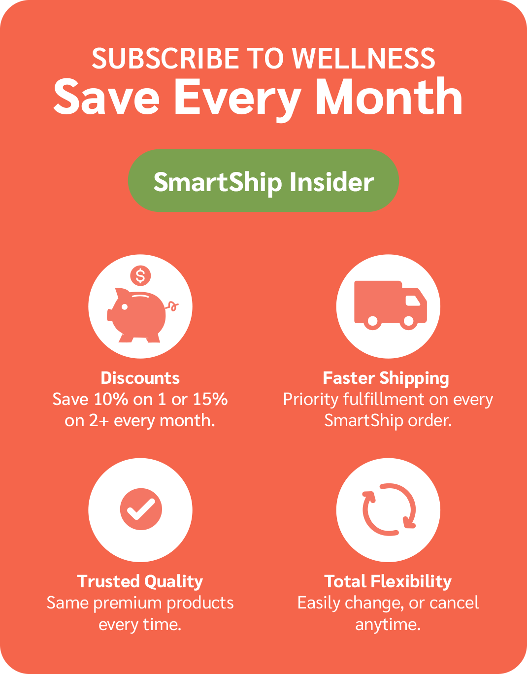 Set it and forget it—your favorite products arrive automatically, on your schedule. Plus, every SmartShip order comes with exclusive savings, making wellness effortless and affordable.